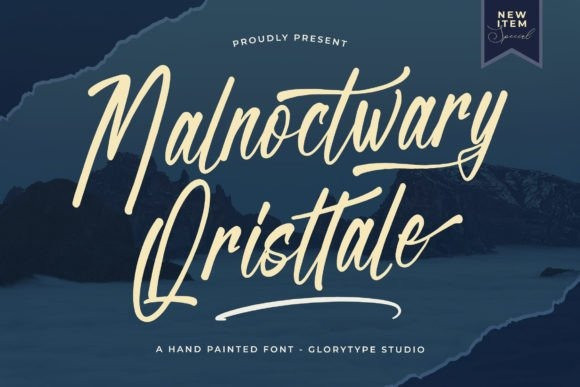 Malnoctwary Qristtale – Hand Painted Font , from Glorytype Studio, suitable for any projects such as: logos, branding projects, homeware designs, product packaging, mugs, quotes, posters, shopping bags, t-shirts, book covers, name card, invitation cards, greeting cards, label, photography, watermark, special events, and all your other lovely projects that need a beautiful script taste.