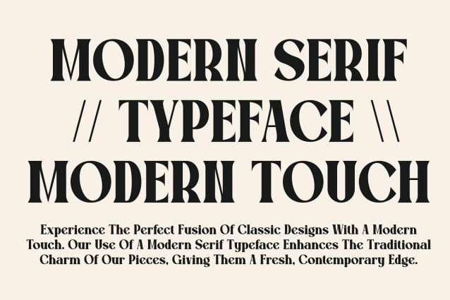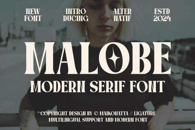 Malobe Font – Modern Serif Font. This font features a balanced proportion of stroke thickness and fineness, creating attractive and easy-to-read visuals. This modern serif style is often characterized by a bold distinction between thick and thin lines, providing a touch that is understated but still stands out.