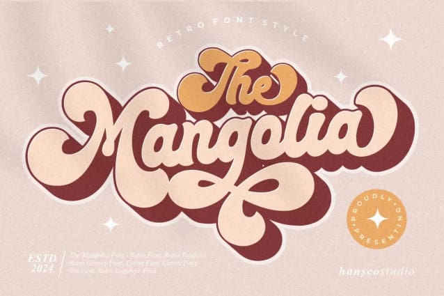 Mangolia Retro Font is a modern, clean and cute retro font style. You will also get extra shadow/outline fonts in this font pack to make your design projects perfect. Use this display font to add that special retro touch to any design idea you can think of!. Equipped with all complete characters ranging from uppercase letters, lowercase letters, numbers, punctuation marks and multi-lingual support, this font is ready to be used in any project. Very suitable for logotype, Stickers, Packaging design, Cricut Project, headlines, brand identity, t shirt or apparel industry, posters, magazines, books, YouTube, Instagram, websites, or any of your creative design projects.