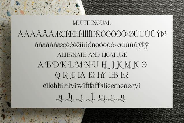 Maniefa Font is a serif font that exudes luxury and elegance. It draws attention and enhances any design. It is perfect for invitation card designs, company logos, movie titles, movie names, business cards, book titles, brand names, and many other designs. Maniefa is an elegant serif font that exudes sophistication and cohesion. Its stylish inflections and ligatures make it a perfect partner for any project.