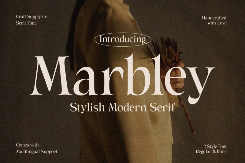 Marbley Font is a stylish modern serif font that provides a striking contrast to its surroundings. The exquisiteness of Marbley’s strokes and elegantly pointed serifs provide a striking visual effect, no matter what kind of text you’re using it for. Whether it’s for a website headline, or just some simple text on your page, Marbley will make your work look better than ever!.