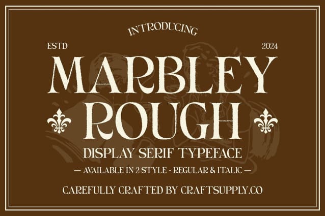 Perfect for Premium Branding and Creative Projects Marbley Rough is designed for applications that demand both elegance and boldness. Its unique blend of classic and artistic elements makes it ideal for premium branding, editorial design, and creative projects requiring a sophisticated yet distinctive look. Whether you’re crafting high-end branding materials or dynamic editorial layouts, Marbley Rough delivers an impressive combination of luxury and creativity, ensuring your designs stand out with both style and substance.