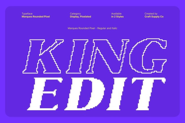 Marques Rounded Pixel Font This is a classic modern serif display font designed with clean, slender lines that exude elegance and professionalism. Each character is carefully crafted to maintain clarity and refinement, making it ideal for projects that demand a polished, high-end appearance. Its subtle curves and smooth edges create a balanced, timeless look.