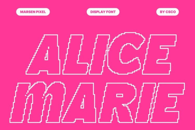 Marsen Pixel Font This is a modern sans serif display font designed to combine minimalism with expressive detail. Its clean, structured forms maintain clarity and functionality while the inktrap detailing adds subtle sophistication and boldness. Every letter achieves a perfect balance of simplicity and visual impact, making it ideal for contemporary designs.