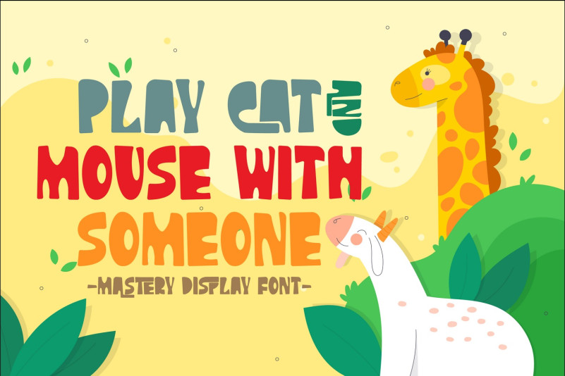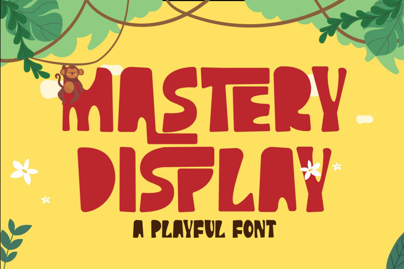 MASTERY DISPLAY Font is a playful font, it’s a bold, quirky display font with a fun and trendy cute characters. This font perfectly made to be applied especially in logo, and the other various formal forms such as invitations, labels, logos, magazines, books, greeting / wedding cards, packaging, fashion, make up, stationery, novels, labels or any type of advertising purpose.