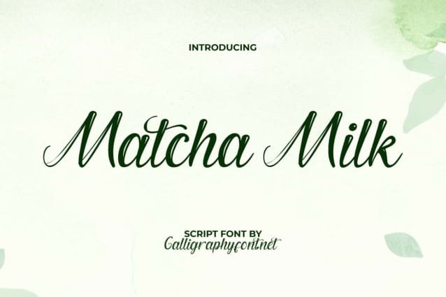 Matcha Milk Font is a natural and modern calligraphy font created with heart to provide a handmade feel for any business. It will play an important role in whatever your industry, such as bakery or pastries, beauty clinic, beverage trademark, cafe, candy shop, event organizer, fashion, graphic design, handicraft, movie, restaurant, photography, printing, publishing, spa salon, and more.