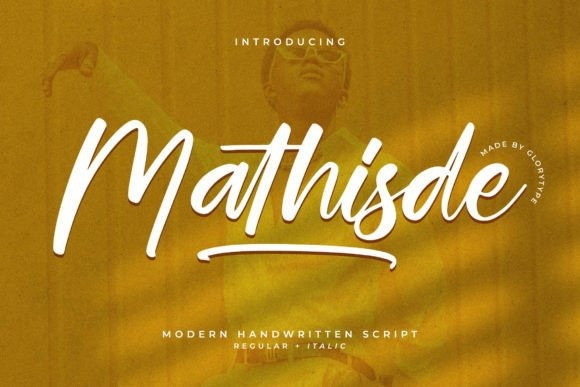 Mathisde – Modern Handwritten Script, from Glorytype Studio, suitable for any projects such as: logos, branding projects, homeware designs, product packaging, mugs, quotes, posters, shopping bags, t-shirts, book covers, name card, invitation cards, greeting cards, label, photography, watermark, special events, and all your other lovely projects that need a beautiful script taste.