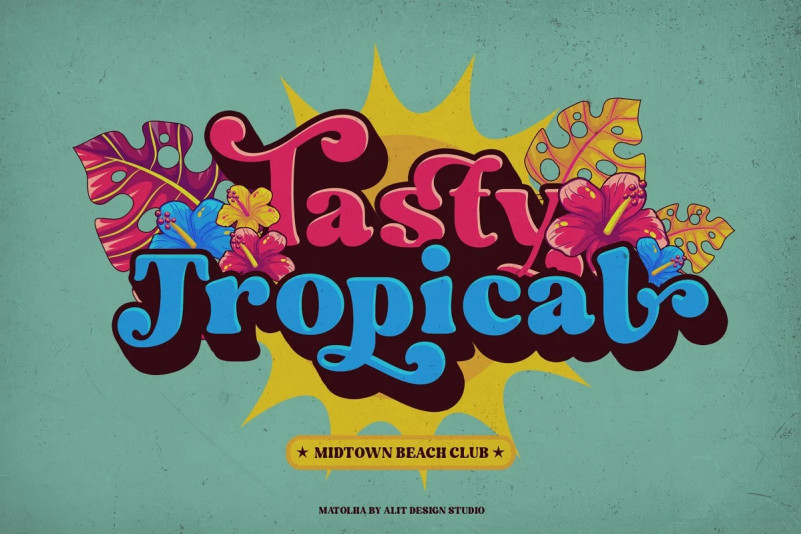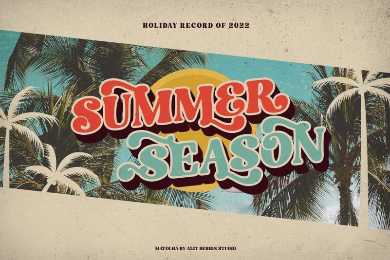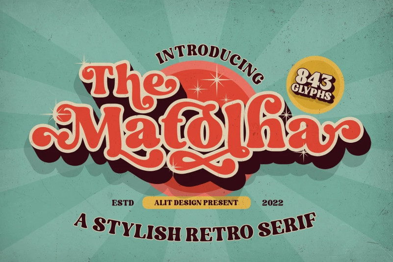 The Matolha Retro Font by alitdesign. The Matolha Typeface is inspired by stylish designs from the 80s to 90s. At that time the font style like “The Matolha Typeface” had a firm and trendy impression. The Matolha Typeface has a wide selection of alternative characters and swashes that make it easy to create bold retro-style designs.
