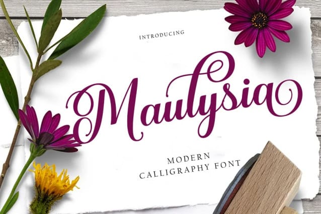 This font is made for personal use. Get the full version of the fonts if you want to use it for commercial purposes by purchasing the licenses here: https://creativemarket.com/Gatype/7240218-Maulysia?u=fontlot123