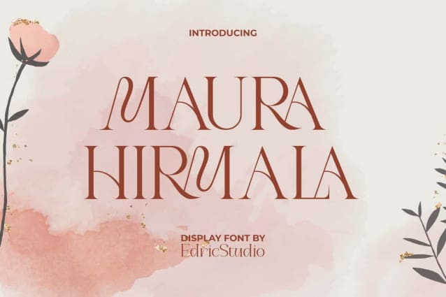 Maura Hirmala Font is a beautiful font display with flower petals ornament that have elegant curves. Enhance your typography with its radiant beauty in any setting. This would be perfect for app view, blogs, brand logo, brochure, cover, greeting card, headlines, logos, magazines, packaging design, signage, sticker, watermarks, website, wedding invitation, or even longer text perhaps like quotes.