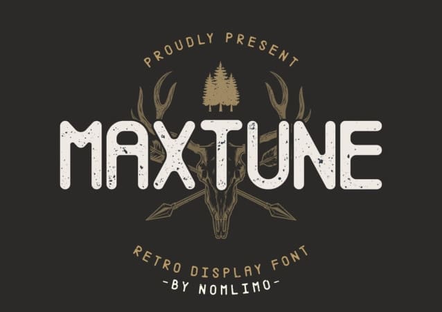Maxtune Display Font, a bold monoline font with a vintage touch. This typeface is specifically designed for applications such as logos, headlines, signage, and other formal forms, including invitations, labels, magazines, books, greeting/wedding cards, packaging, fashion, makeup, stationery, novels, labels, or any type of advertising purpose. Maxtune captures a nostalgic essence, adding a touch of timeless elegance to your designs.