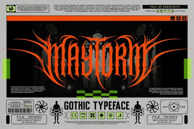 Whether you’re designing album covers, merchandise, or promotional materials for a metal band, Maytorm Metal is the font that will set your creations apart. Embrace the fierce aesthetic of metal brutalism and let Maytron be the voice that roars through your design projects. Unleash the mayhem, unleash Maytron!