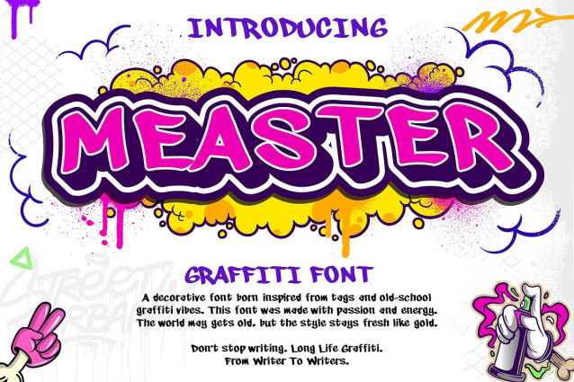 Measter Font is a modern graffiti-inspired typeface that blends raw tag energy with clean, readable structure. Influenced by old-school handstyles and street lettering, this font brings character and attitude while remaining versatile for contemporary design needs. This font was crafted by a graffiti writer known as Meas7. A writer from the streets of Indonesia.