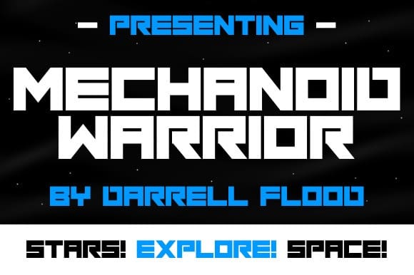 Mechanoid Warrior Font is a hard hitting sci-fi font in a slick modern style. Perfect for futuristic settings, advanced tech themes and general modern music use!