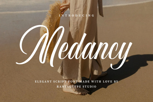 Medancy Font is elegant script with flowless curve embrace grace and vintage vibes. Medancy is a perfectly choice for any creative endeavor, creating, modern, chic, lifestyle design such as logotype, title, cover, branding, invitations, wedding designs, display and magazine, social media posts, advertisements, printed quotes, product packaging, corporate brand, product designs, labels, photography, watermarks, special events and any other project with vintage touch.