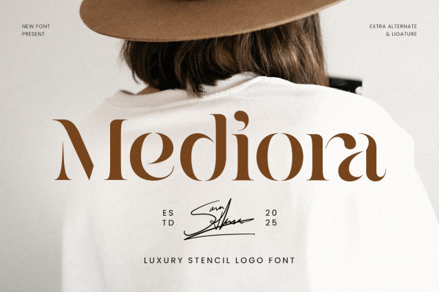 Whether used for logo design, brand identity, posters, or upscale marketing materials, Mediora brings a confident luxury presence that feels contemporary and unforgettable.