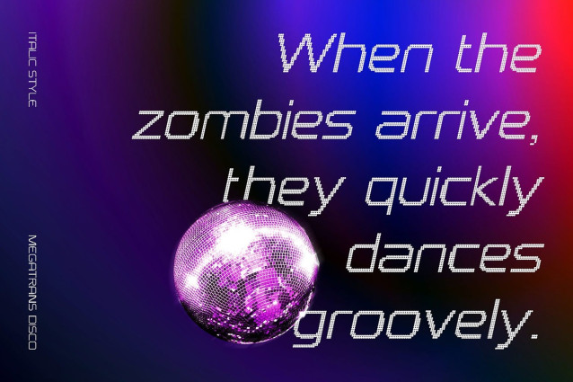 Energetic Visual Rhythm with Disco-Inspired Vibes By incorporating disco effects, Megatrans Disco transforms into an energetic, rhythmic typeface that grabs attention. These elements inject movement, fun, and boldness, turning it into a standout option for display purposes where impact is key.