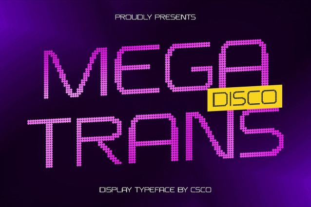Ideal for Pop Culture, Music, and Bold Branding Perfect for electronic music posters, party-themed visuals, or pop-culture branding, Megatrans Disco offers the perfect combination of futuristic design and disco energy. It’s a bold typographic choice for projects that demand excitement, vibrancy, and a forward-thinking visual identity.