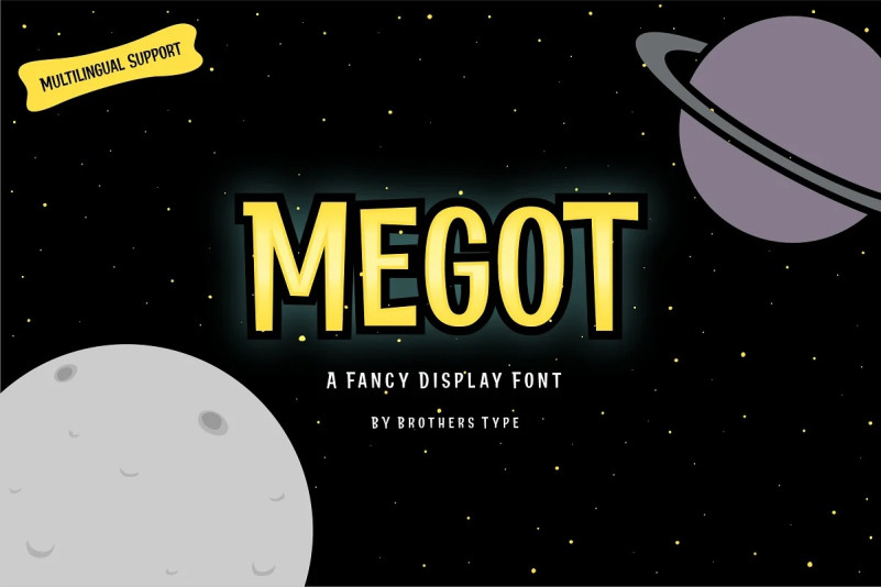 Megot Display Font is a modern fancy display font with playful feel. Comes with opentype features, Megot also supports multilingual covering Latin based language (Latin Extended Additional)