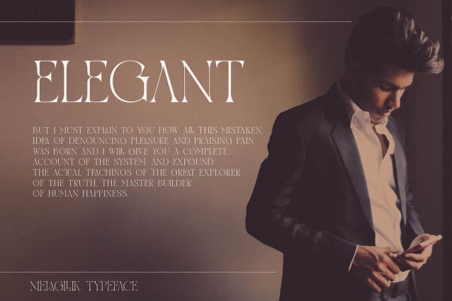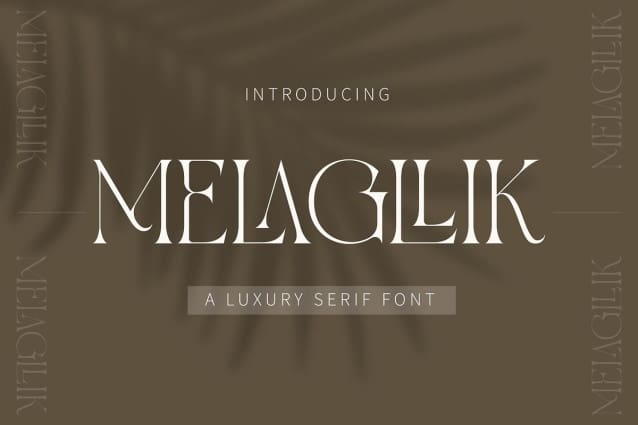 Melagllik Font – Modern Serif, created by Denustudio, A serif modern and classic typeface that has own unique style & modern look. This typeface is perfect for an elegant & luxury logo, book or movie title design, fashion brand, magazine, clothes, lettering, quotes, and so much more.