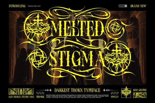 Every curve carries an instinctual violence, and every stroke is a balance between regal divinity and omen-laden power. Whether you are channeling the vibe of obscure occult graphics, extreme metal aesthetics, or futuristic tribalism, Melted Stigma delivers a visual impact that is impossible to ignore.
