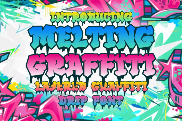 Melting Graffiti Font, a vibrant layered drip graffiti font that truly captures the essence of city art culture. With bold, edgy letters, the font showcases sharp angular forms, thick strokes, and uniquely eye-catching melting drips that make every character appear as if fresh paint is dripping right off the surface. This font brilliantly combines a dynamic graffiti look with a visually compelling melting effect, making it perfect for projects that need an urban, artistic, and youthful vibe.