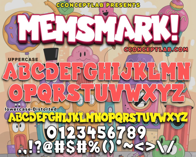 Memsmark Font is a chunky, comic, and cartoon display font. With its neat and joyful personality, this font will enhance any project you wish to create!