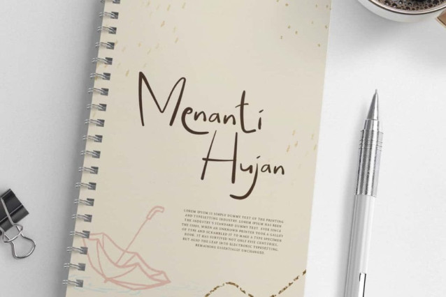 Menanti Hujan Font is an adorable handwriting font that is very comfortable to look at. This will give maximum results to the creative designs you create. Suitable for apps, banners, billboard, blogs, brochure, cover, greeting cards, headers, headline, invitation, label tag, logos, mockup, poster, printed materials, printing, quotes, stationery, stickers, template, titles, watermarks, website, and more.
