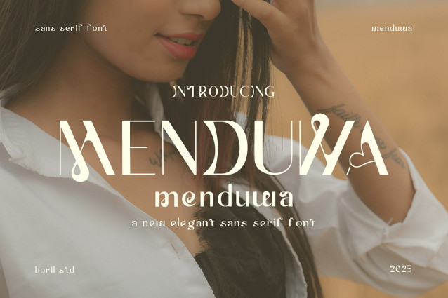 Menduwa font: exhibits experimental characteristics with a unique combination of geometric and decorative styles. The basic letters look modern and minimalist, but are embellished with decorative elements such as curves, loops, and curved accents at specific points.