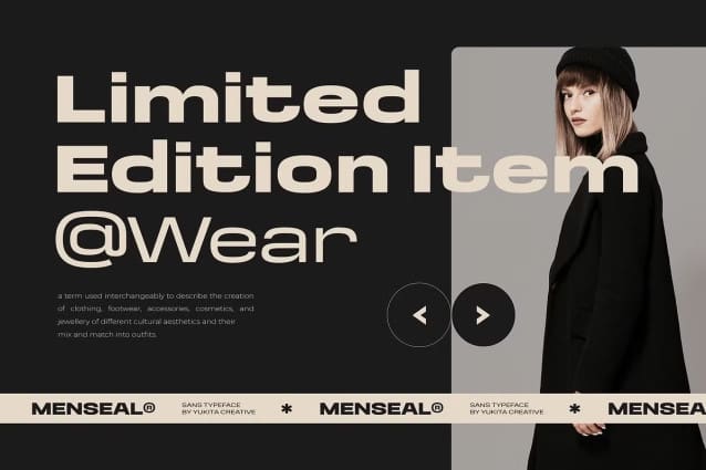 The use of Menseal in the design adds a modern touch, ideal for fashion brands looking to stand out. Its consistent style ensures clear and effective communication of brand messages to target audiences.