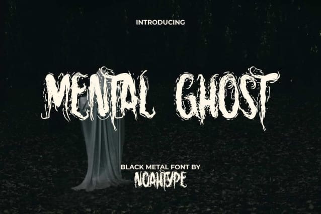 Mental Ghost Font is a terrifying hardcore metal horror display font by NoahType. This font carries a black metal concept which has its own characteristics and can give you goosebumps. It will be perfect for any designs, such as brand image, cover, custom design, invitation, label, marketing material, menu, poster, product packaging, quote, signage, stationery, web, and many more!