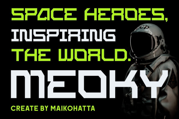 Meoky Futuristic Font, with sharp lines, geometric letter shapes, and futuristic elements, this font is suitable for projects related to technology, robotics, science, and modern lifestyle. This font are often found in logos, website designs, posters, and other creative projects that require a futuristic touch.