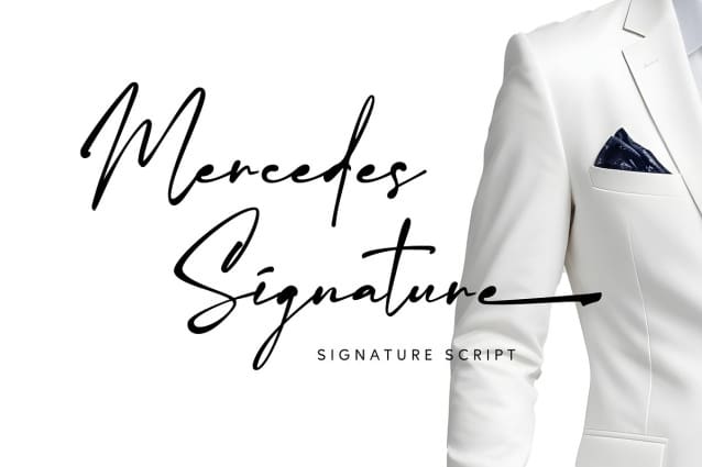 Mercedes Signature Font is an organic signature script font. This font is the best choice for fashion-related design. MercedesSignature is perfect for branding, invitations, logos, or any creative projects that requires a touch of elegance.