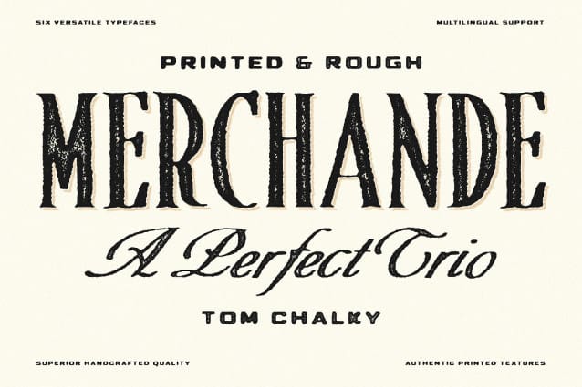Whether it’s elevating your brand’s aesthetic, giving depth to your packaging, or infusing character into your advertising and print endeavors, Merchande Print is designed to deliver a touch of the artisanal to every word. Dive into the collection and let your creative projects resonate with a genuine textured typographic experience.