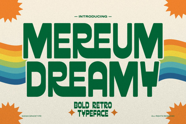 Mereum Dreamy Font | Bold Retro Typeface, from Gracetypestudio, suitable for any projects such as: logos, branding projects, homeware designs, product packaging, mugs, quotes, posters, shopping bags, t-shirts, book covers, name card, invitation cards, greeting cards, label, photography, watermark, special events, and all your other lovely projects that need a Retro Typeface taste.