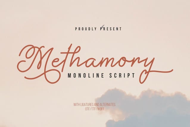 This font is used only for demos (Demo license). If you want to use this font for commercial use please contact: https://creativemarket.com/Denustudios/280881181-Methamory-Monoline-Script-Font?u=fontlot123
