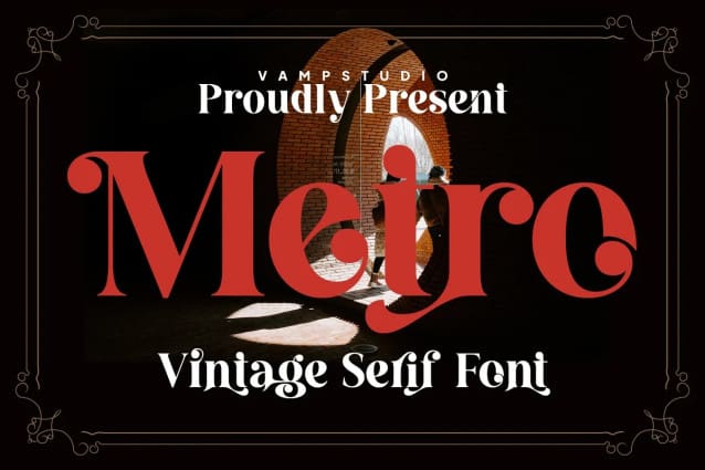 Metro Serif Font is used only for demos (Demo license). If you want to use this font for commercial use please contact: https://creativemarket.com/Vampstudio/42226392-Metro-Regular-Vintage-Retro-Serif?u=fontlot123