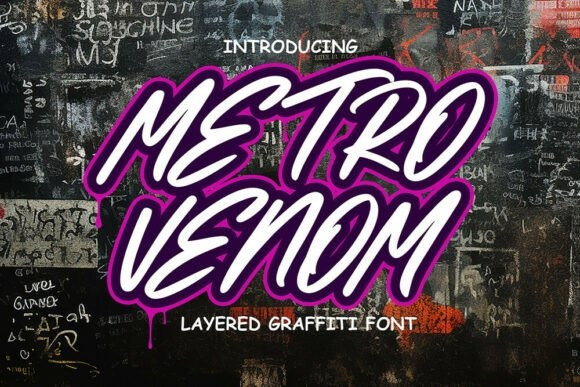 Metro Venom Font is an outlined graffiti brush typeface that blends raw street expression with a bold contemporary design approach. Created for designers who want strong visual identity and fearless personality in their typography, Metro Venom captures the unmistakable energy of hand-brushed graffiti outlines — fast strokes, sharp edges, irregular pressure, and expressive movement. The result is a typeface that feels intense, dynamic, and alive, ready to dominate any layout with confidence.