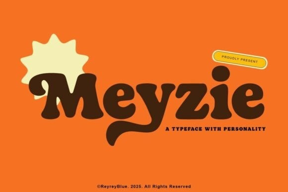 Meyzie Font, a bold retro serif font that brings charm, fun, and groovy vibes into your design projects. Inspired by vintage typography from the 60s and 70s, Meyzie features chunky letterforms with whimsical curves and a bold personality, perfect for capturing attention and evoking nostalgia.
