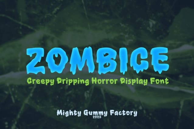 MGF Zombice Font is a creepy dripping display font with a chilling mix of horror and icy slime vibes, making it perfect for Halloween posters, gaming designs, spooky logos, and merchandise. Its bold letterforms resemble melting ice or dripping slime, giving your designs a scary yet playful aesthetic.