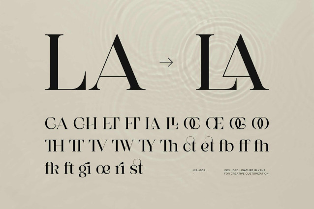 Perfect for luxury branding, magazine headlines, logotypes, high end packaging, luxury product design, wedding invitations, fashion lookbooks, and social media graphics, Mialgor elevates your project with a sense of artistry and refined modernity.