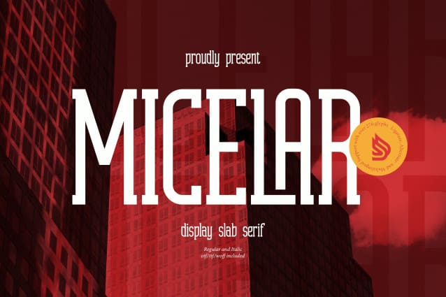 This font is free for personal use only. Purchase the Full Version here: https://denustudios.com/micelar-display-slab-serif/