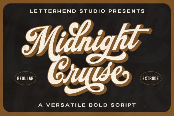 This font is made for personal use. Get the full version of the fonts if you want to use it for commercial purposes by purchasing the licenses here: https://www.letterhend.com/product/midnight-cruise-versatile-bold-script/