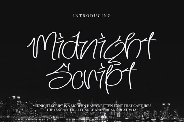 Midnight Script Font is a modern handwritten font that captures the essence of elegance and urban creativity. With its tall, flowing strokes and unique handwritten details, this typeface delivers a sophisticated yet relaxed aesthetic. Perfect for branding, logo design, posters, and digital artwork, Midnight Script brings a sense of night-time charm and artistic personality to any visual project. Its fluid lines and stylish curves make it ideal for designers seeking a contemporary handwritten feel with a touch of individuality.