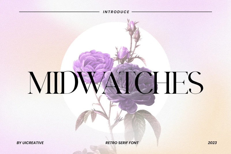 MIDWATCHES Font – Retro Serif Font. Modern Serif font that feels beautiful classy, elegant, and modern. This font is ideally suited for a wide variety of projects, such as signature, stationery, logo, wedding, typography quotes, magazine or book covers, website headers, clothing, branding, packaging design, and more. Also, fashion-related branding or editorial design displays both masculine and feminine qualities.