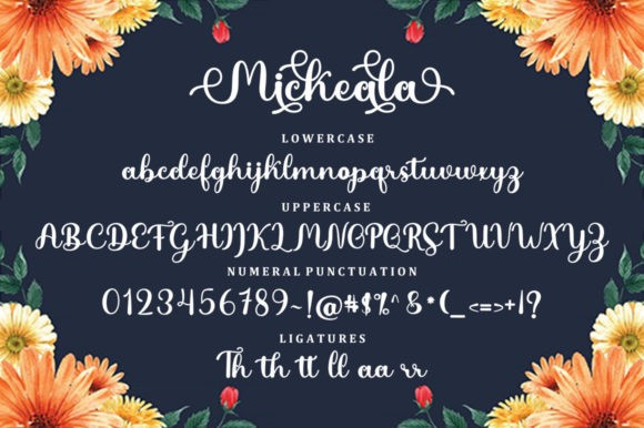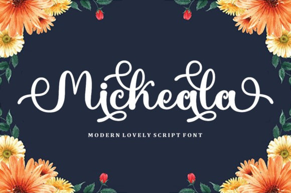 Mickeala Script Font is a romantic and sweet calligraphy typeface with characters that dance along the baseline. It has a casual, yet elegant touch. This font is PUA encoded which means you can access all of the glyphs and swashes with ease!