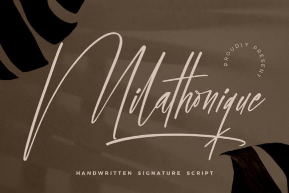 Milathonique Font – Handwritten Signature Script suitable for any projects such as logos, branding projects, homeware designs, product packaging, mugs, quotes, posters, shopping bags, t-shirts, book covers, name cards, invitation cards, greeting cards, labels, photography, watermark, special events, and all your other lovely projects that need a beautiful script taste.