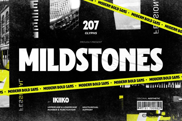 Mildstones Font – Modern Bold Sans, created by ikiiko. A contemporary bold condensed sans serif typeface created to breathe life into headlines with its eye-catching presence. Mildstones Font attracts attention and takes any design project to a new level with its striking and fashionable look.