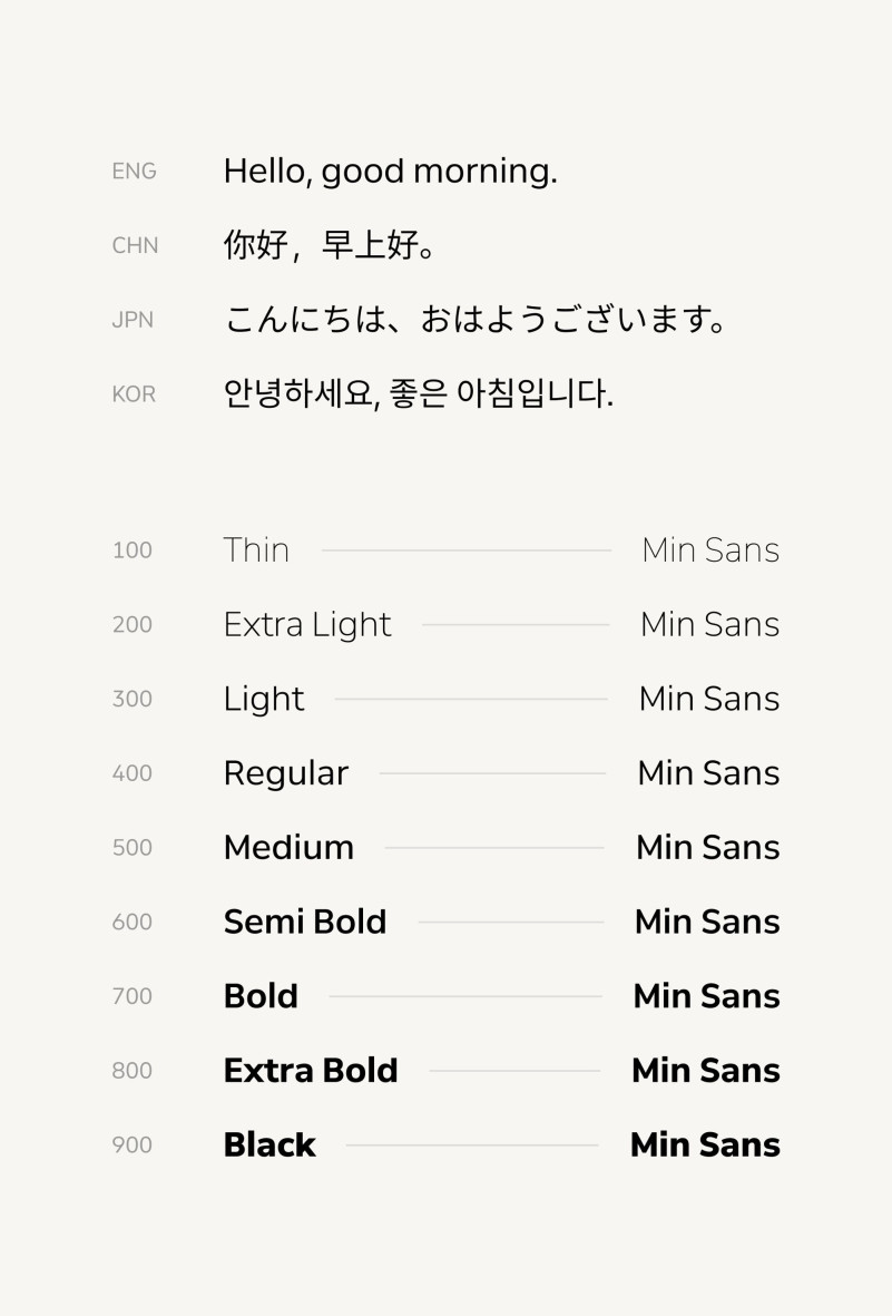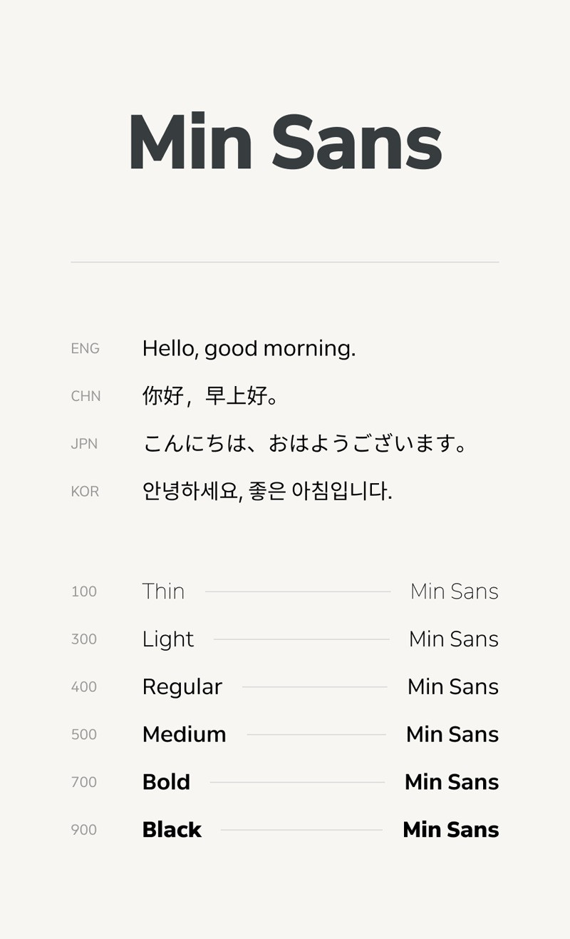 Min Sans Font, is a harmonious multilingual typeface that combines CJK, Latin letters, and numbers.