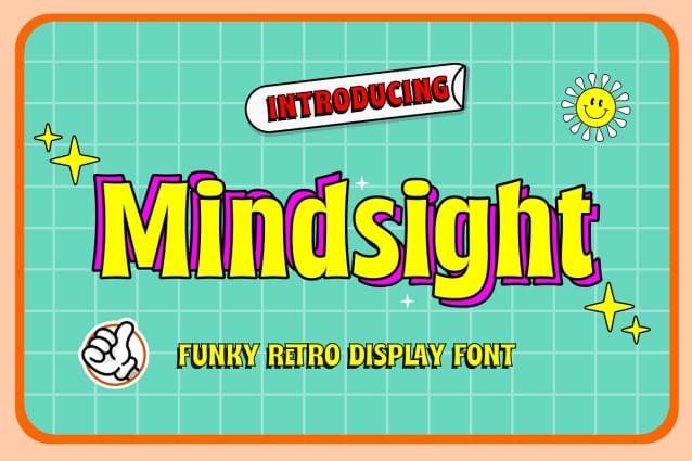 Mindsight Display Font – Funky Retro Display Font is a vibrant and energetic typeface that captures the essence of vintage aesthetics. With its playful curves and bold strokes, it adds a touch of nostalgia and creativity to any design project, making it perfect for eye-catching headlines, posters, and artistic displays.